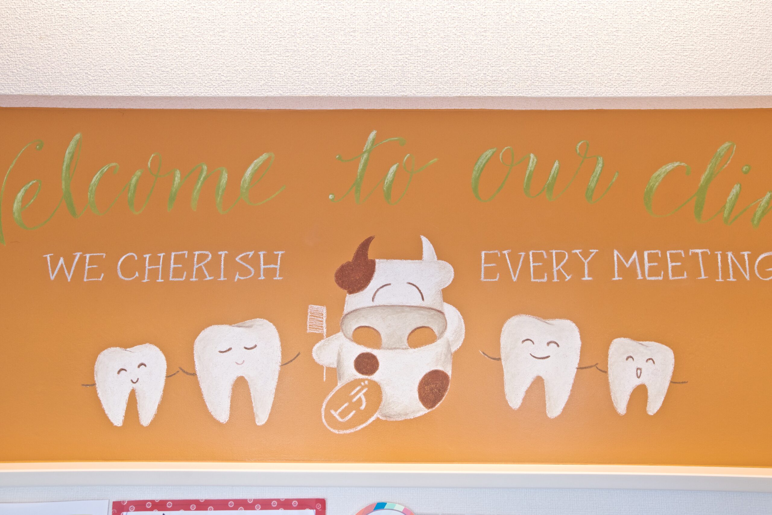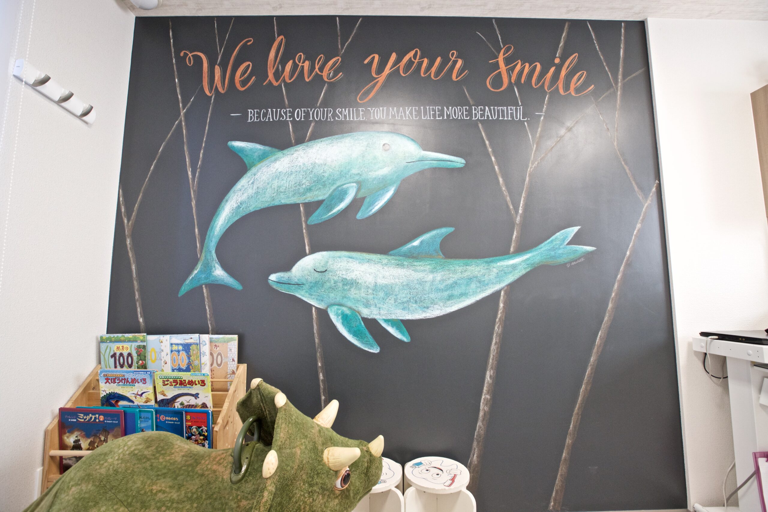 個室診療室の壁にはかわいいドルフィンのチョークアートを施しております。