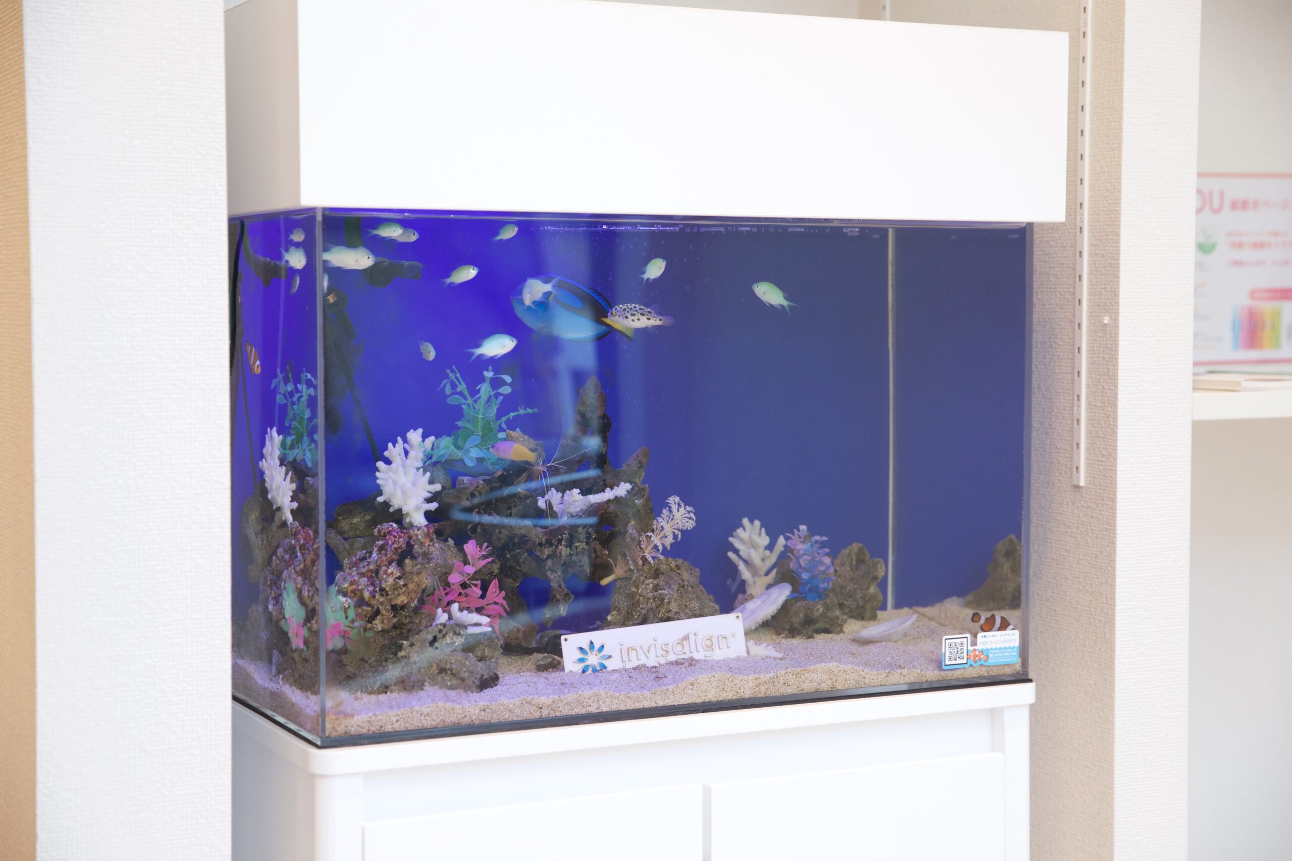 大人気のニモもいるアクアリウムを設置。治療後にエサをあげることもできます。