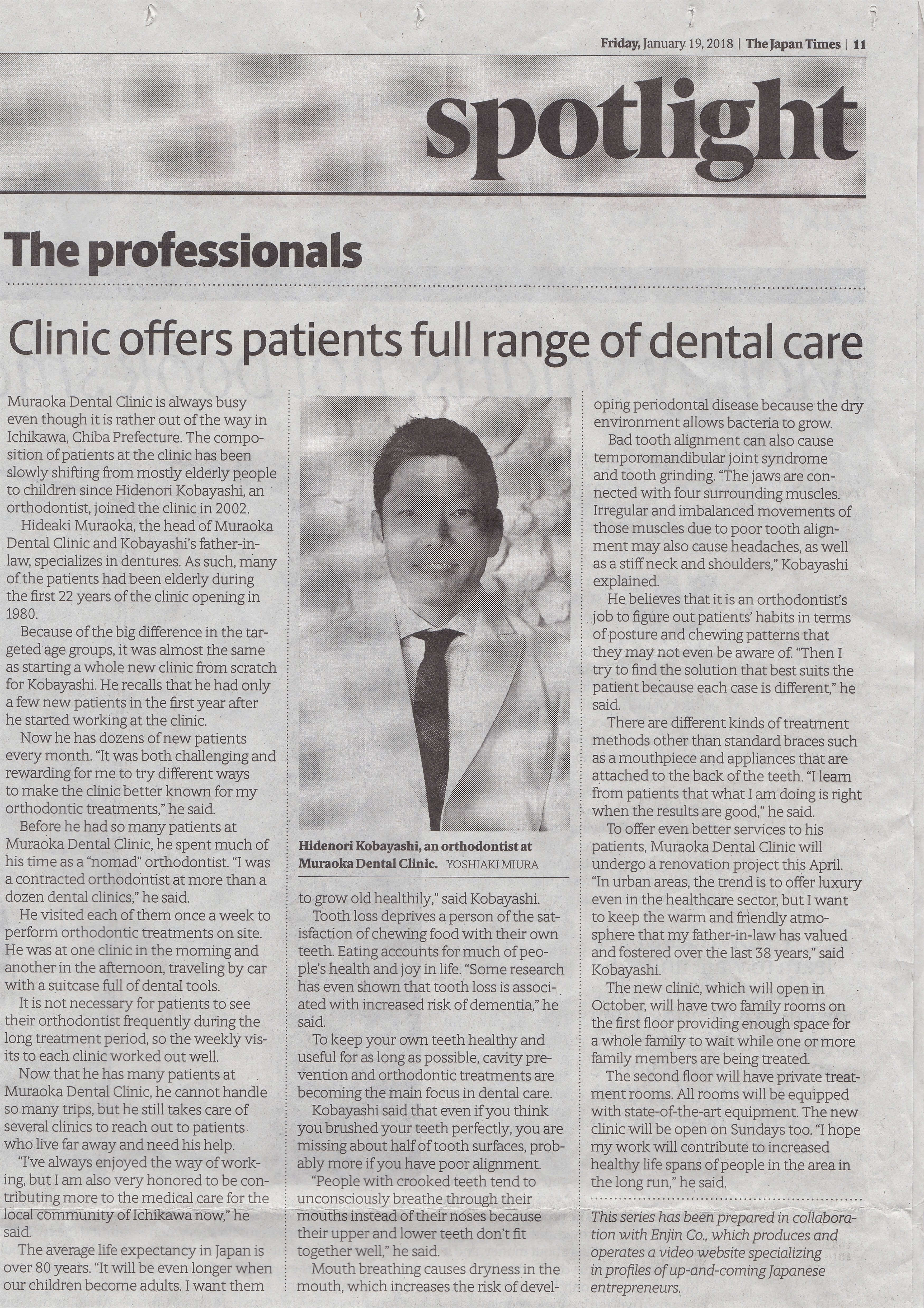 2018年1月 世界三大新聞 「THE JAPAN TIMES 」に掲載されました